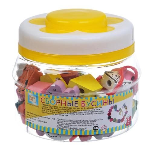 Задача ребенка – собрать бусы на шнурке. Нанизывать элементы можно в произвольном порядке или придумать какой-то критерий: только красные или только фрукты. Придумывайте новые и новые варианты! С такими бусами весело и наглядно учиться считать. Удобная прозрачная баночка-упаковка позволит ребенку сложить детали после игры.