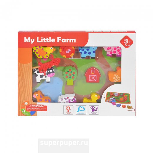 Купить шнуровка "Ферма 12 деталей дерево" в Новосибирске Вы можете в магазине развивающих и настольных игр "Игры Почемучек".