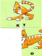 Ребятишкам предстоит собирать целостные изображения и слова из карточек с изображением фрагментов животных и предметов. Правильно соединив карточки между собой, ребята смогут прочесть слово.