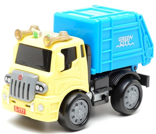 Модель Грузовик-мусоровоз – это отличный подарок для совсем еще юного любителя машин и различной техники. Грузовик-мусоровоз оснащен звуковыми и световыми эффектами, что роднит его с настоящей городской спецтехникой. Мусорный контейнер можно поднимать и опускать. В поднятом состоянии отсек открывается. Таким образом, при помощи этой машинки ваши дети смогут играть в перевозку мусора. Модель отличается превосходной детализацией. На лобовом стекле можно разглядеть изображения дворников, а на лицевой части самого авто — номерной знак.