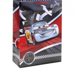 Подарочный пакет Тачки - можно использовать как небольшой презент или как красивую упаковку под непосредственный подарок. Ламинированные бумажные пакеты — лидеры по популярности среди подарочной упаковки. Выполнен он в ярких и красочных тонах, с изображением героя мультфильма Тачки. Благодаря качественной печати рисунок не сотрётся и не выгорит и к тому же он достаточно прочен, способен выдержать до 10 килограмм. Так что в дальнейшем его владелец может пользоваться им по прямому назначению, для походов в магазин и т.д.