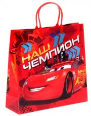 Легкие пластиковые пакеты — лидеры по популярности среди подарочной упаковки. Выполнен он в ярких и красочных тонах, с изображением героев из мультфильма Тачки. Благодаря качественной печати рисунок не сотрётся и не выгорит и к тому же он достаточно прочен, способен выдержать до 10 килограммов. Так что в дальнейшем его владелец может пользоваться им по прямому назначению, для походов в магазин и т.д.