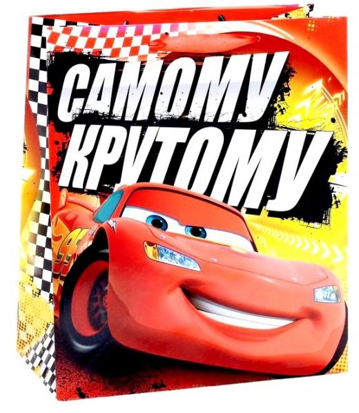 Пакет ламинированный вертикальный Самому крутому Тачки – можно использовать как небольшой презент или как красивую упаковку под непосредственный подарок. Ламинированные бумажные пакеты — лидеры по популярности среди подарочной упаковки. Выполнен он в ярких и красочных тонах, с изображением одного из героев мультфильма Тачки. Благодаря качественной печати рисунок не сотрётся и не выгорит и к тому же он достаточно прочен, способен выдержать до 10 килограмм. Так что в дальнейшем его владелец может пользоваться им по прямому назначению, для походов в магазин и т.д.