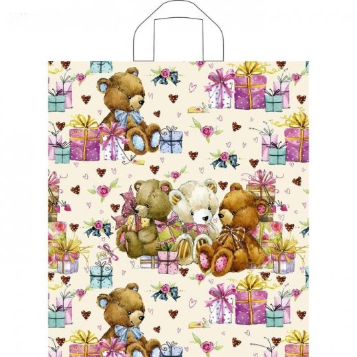 Любой подарок начинается с упаковки. Что может быть трогательнее и волшебнее, чем ритуал разворачивания полученного презента. И именно оригинальная, со вкусом выбранная упаковка выделит ваш подарок из массы других. Она продемонстрирует самые тёплые чувства к виновнику торжества и создаст сказочную атмосферу праздника. Пакет Мишка с подарками, с петлевой ручкой - можно использовать как небольшой презент или как красивую упаковку под непосредственный подарок.