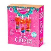 - В комплекте: пластиковые фигурки, свечной гель, стеклянные стаканы, цветной кварцевый песок, блёстки, фитили, пластмассовая ложка, инструкция.