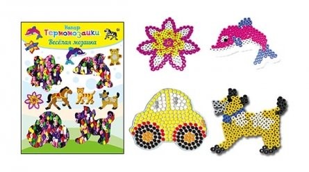 Набор термомозаики "Рыжий кот"- это увлекательная развивающая игра для детей старше 5 лет. Термомозаика - это великолепные мозаичные картинки из бусин, которые сплавляются друг с другом с помощью бумаги для проглаживания и утюга. С помощью данного набора Ваш малыш сможет создать четыре оригинальные картинки в виде цветочка, дельфина, собачки и машинки. Для творческого процесса в комплект входит все необходимое: разноцветная мозаика, 4 эскиза, лекало и инструмент для крепления мозаики. Нанизывая определенным образом цветные бусинки на штырьки круглой основы, создаем нужный рисунок. Затем нужно прогладить через кальку включенным на максимум утюгом в течение минуты. Бусинки при этом слегка расплавятся и соединятся в цельную фигурку. Когда бусинки немного остынут, фигурку можно снять и положить ненадолго под груз, чтобы она не согнулась при остывании. Также с фигурками можно играть, украшать ими комнату или новогоднюю елку. Все детали выполнены из высококачественных материалов, безопасных для ребенка.
