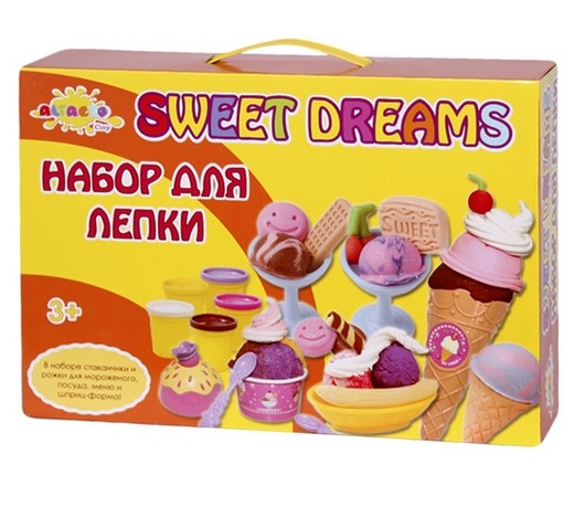 Состав набора: масса для лепки, стаканчики и рожки для мороженного, посуда, меню и шприц-форма. Рекомендуемый возраст: от 3-х лет.