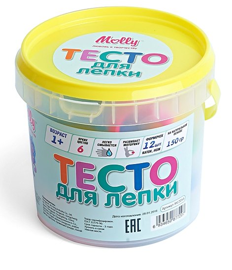Разноцветное тесто для лепки "Molly" прекрасно подходит для обучения детей азам лепки. Тесто пластично, приятно на ощупь и долговечно. Преимущественным отличием теста для лепки "Молли" является то, что оно не пачкает руки и одежду, легко снимается с поверхности, не окрашивает, может использоваться многократно при условии правильного хранения, безопасно для самых маленьких.