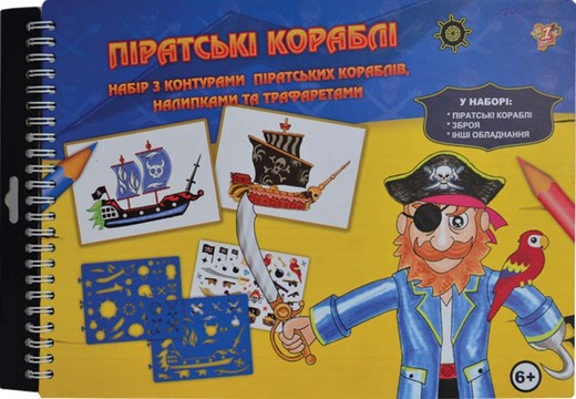 В состав комплекта входят: трафареты, наклейки. С помощью данного альбома ребенок сможет без особых трудностей создавать 36 разных моделей пиратских кораблей.