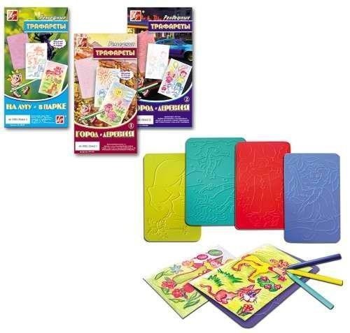 Состав набора: трафареты- 4шт. Рекомендуемый возраст: от 3-х лет.