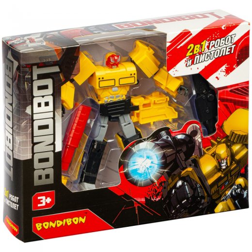 Трансформер BONDIBOT 2в1 желтый робот пистолет с проектором от Bondibon развивает мелкую моторику, фантазию, логическое мышление, познавательные способности.
