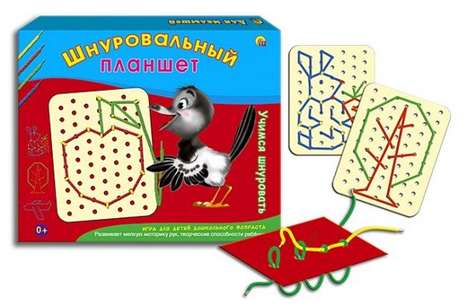 Купить шнуровальный планшет "Учимся шнуровать" в Новосибирске Вы можете в магазине развивающих и настольных игр "Игры Почемучек".