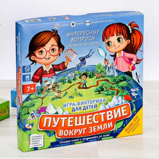 Купить игра викторина "Путешествие вокруг Земли" в Новосибирске Вы можете в магазине развивающих и настольных игр "Игры Почемучек".