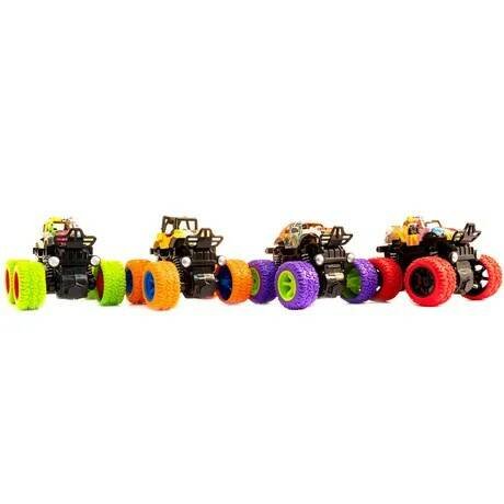 Крутой яркий внедорожник с большими колесами из новой линейки фрикционных и инерционных машинок обязательно станет победителем в играх ралли с самыми непроходимыми маршрутами и виражами.