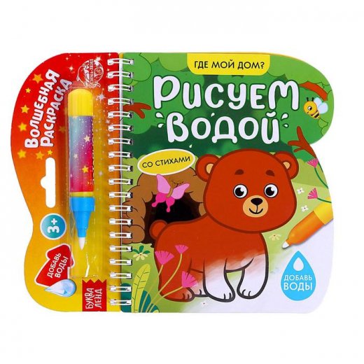 Купить Книжку-раскраску "Рисуем водой. Где мой дом?" в Новосибирске Вы можете в магазине настольных и развивающих игр "Игры Почемучек"