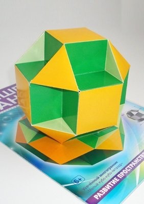 Набор для сборки многогранника: «Малый кубо-кубо-октаэдр». Размеры готового многогранника: 135x135x135 мм.
