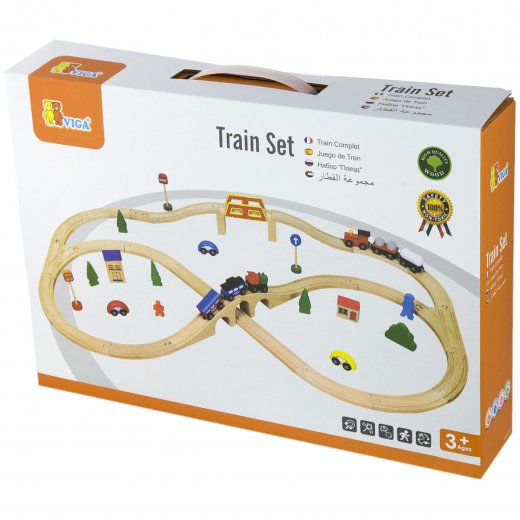 Набор "Железная дорога деревянная 49д" порадует вашего ребенка и подарит много часов удовольствия. Набор содержит 49 деревянных деталей, включая рельсы, поезда, машины, здания, дорожные знаки, деревья, фигурки людей. Размер собранной железной дороги - 105 см х 60 см. Общая длина путей- 400см. Легко и быстро собрав дорогу из деталей набора ваш малыш погрузится в увлекательный мир транспорта. Набор сделан из дерева, все детали выглядят реалистично, хорошо отшлифованы и покрашены.