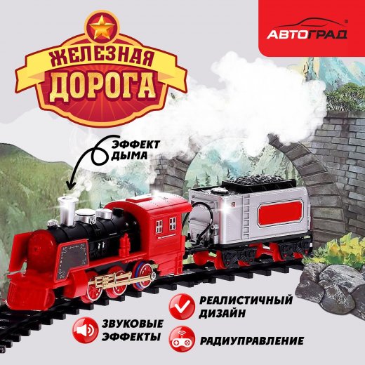 Игрушечная железная дорога воплотит мечту ребёнка стать машинистом! Это уменьшенный прототип реального поезда: представляет собой локомотив с несколькими вагонами.