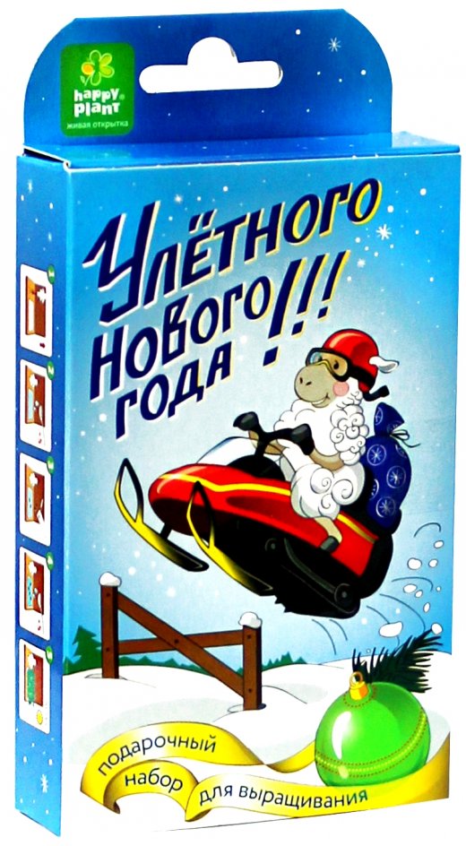 Живая открытка Улетного Нового года! – это весьма интересное и увлекательное занятие для ребенка. Небольшой чемоданчик открывается, и вы видите поле для творчества: целый сад веселой овечки. В комплекте вы найдете наклейки для украшения вашего садика и фигурки - их можно разместить в специальных прорезях рядом с будущей грядкой. В специальном контейнере вы найдете особый материал для посадки. Все, что нужно сделать - это открыть колбу с семенами и высыпать их в контейнер. Теперь семена необходимо равномерно полить, и делать это каждый день, чтобы ваш зеленый садик быстрее вырос.