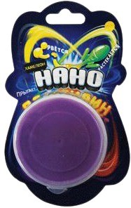 "Нано пластилин хамелеон фиолетовый-синий" сочетает в себе свойства пластилина и жевательной резинки. Тянется, рвется, при ударе отпрыгивает от поверхностей, в спокойном состоянии принимает внутреннюю форму предмета, в котором находится.